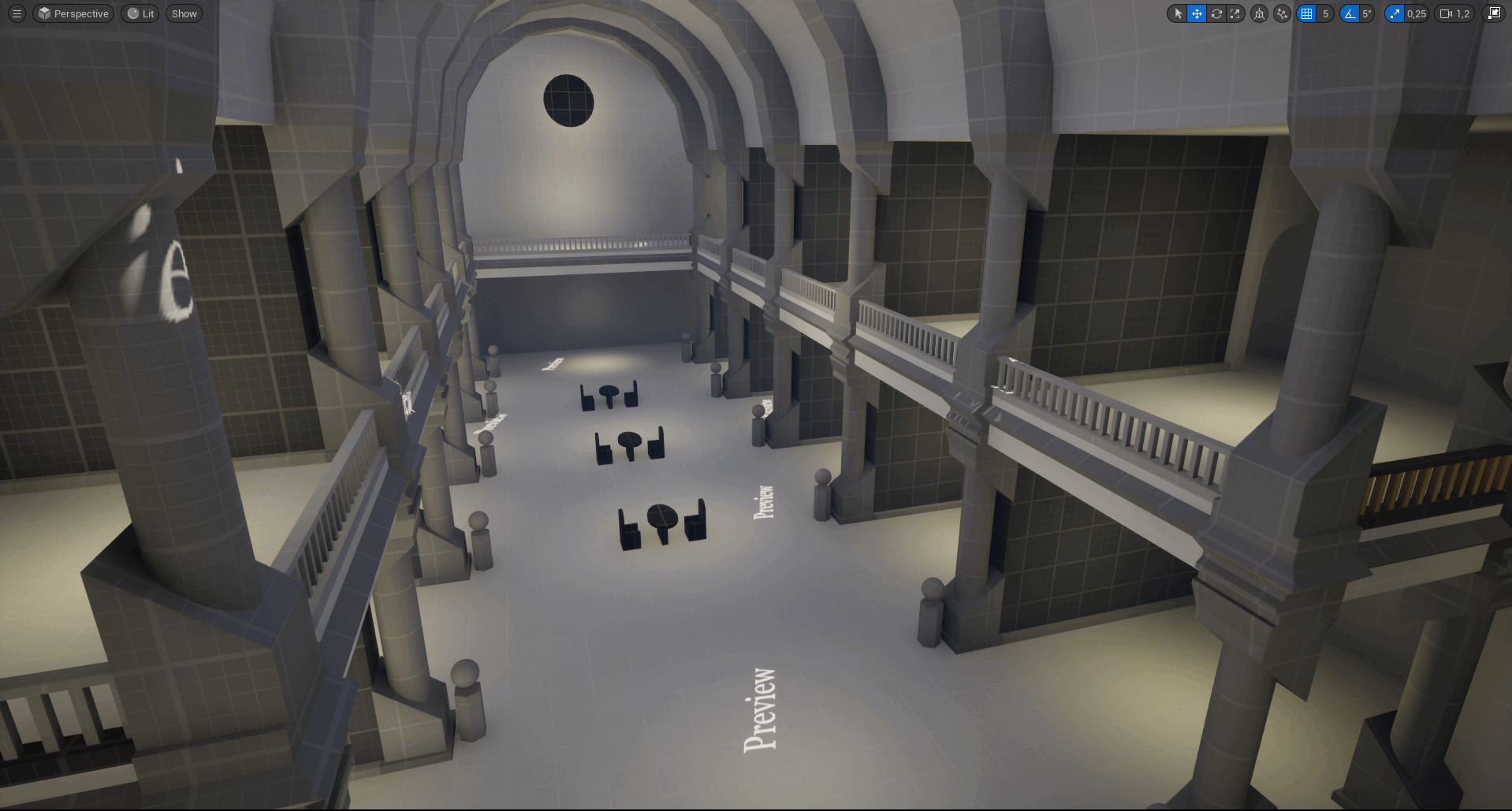 During the blocking step, I learnt the importance and how work with good metrics is a gain of time. I made my assets with Block Out Tool plugin and turn them into static mesh to optimize the project.